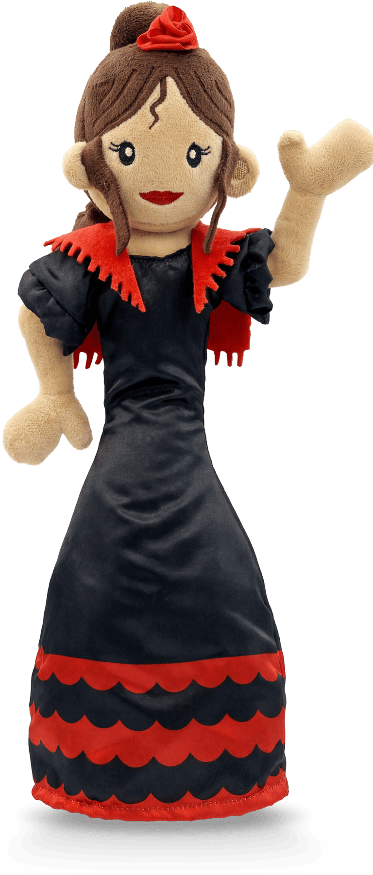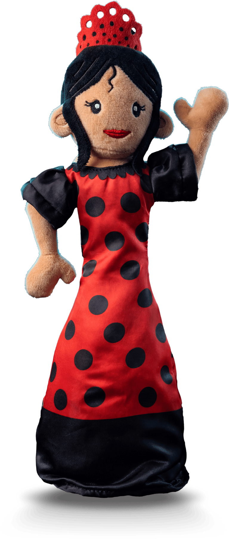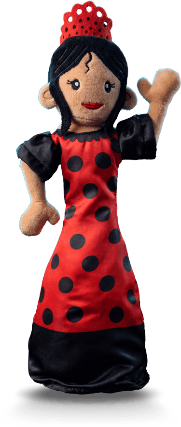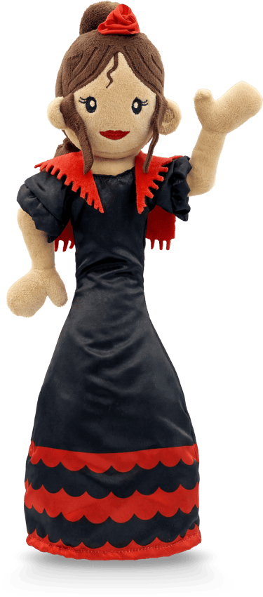Hola! I am Carmen. I am 40 cm of pure passion and pride. With my red dress and my 'peineta', I represent the real soul of our culture. Press my button and let the magic of Spain begin!